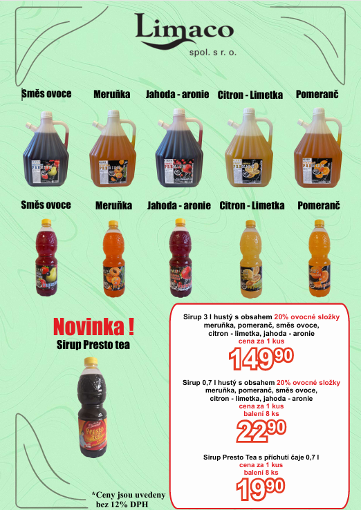 Od roku 1991 vyrábíme v obci Rakvice v Jihomoravském kraji kvalitní sirupy, kterými zásobujeme mnoho odběratelů po celé ČR.